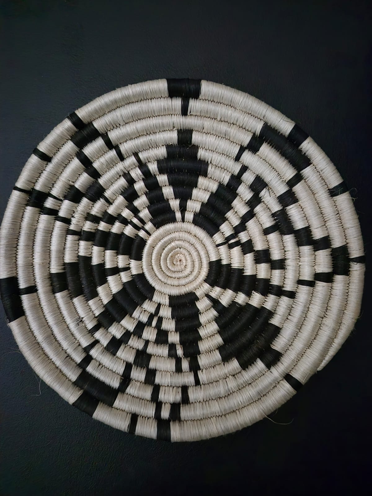 Enhance your home decor with this stunning set of three handwoven seagrass wall plates. Each plate showcases a beautiful concentric pattern crafted with natural seagrass fibers, accented with rich hues of black and white. These versatile wall plates are perfect for adding an artistic touch to any room.